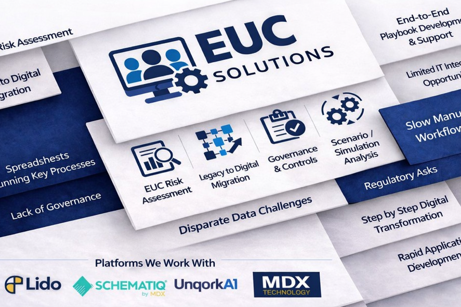 By modernising spreadsheets, databases, and user-built applications, we combine expert advisory with EUC risk assessment, governance and controls, and legacy-to-digital migration.