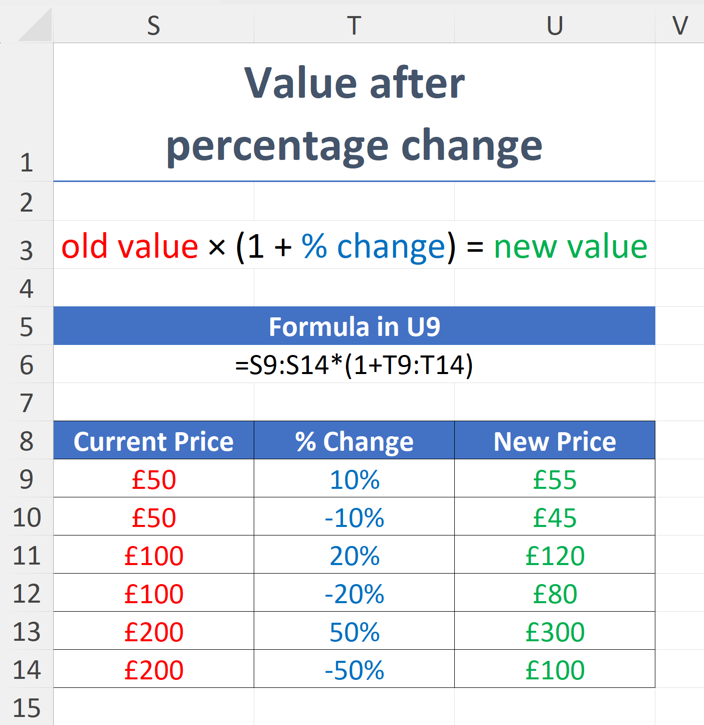 old value × (1 + % change) = new value