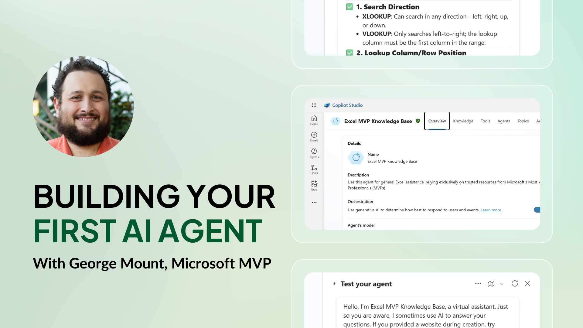 In this webinar, George Mount introduces Excel users to the concept of AI agents and shows how familiar spreadsheet structures can be used to design, test, and supervise them. Rather than positioning AI as something that replaces Excel, this session demonstrates how Excel becomes more powerful when paired with modern AI workflows.