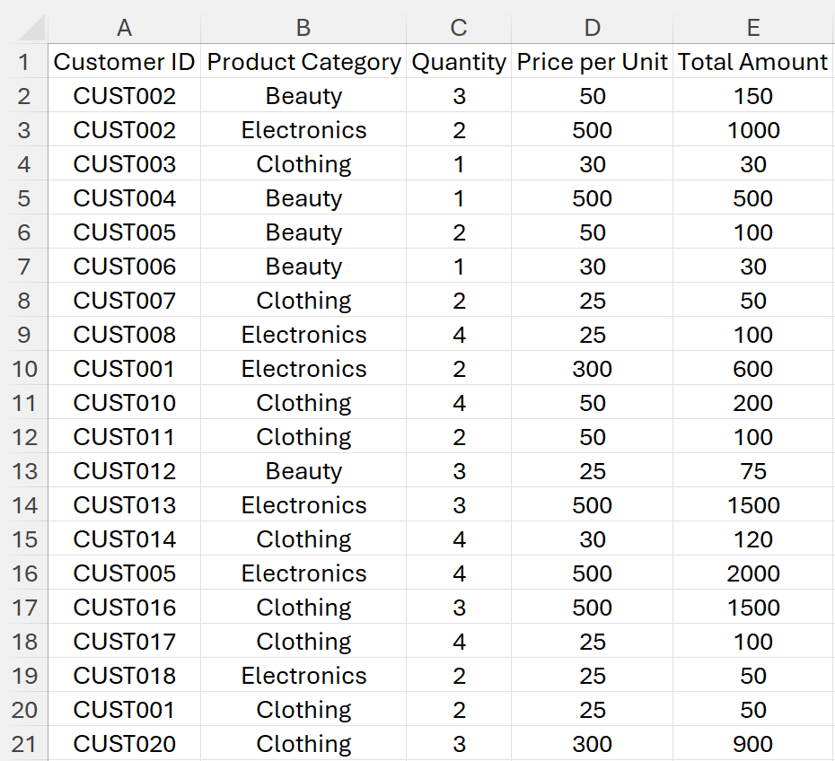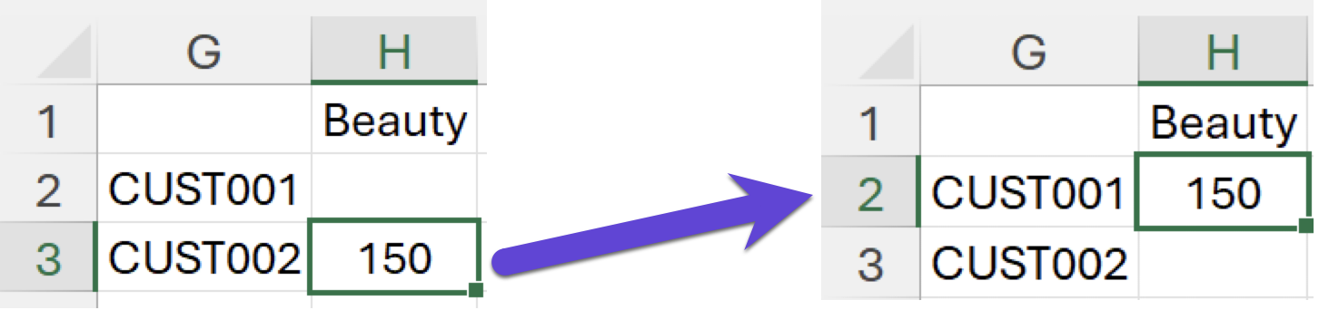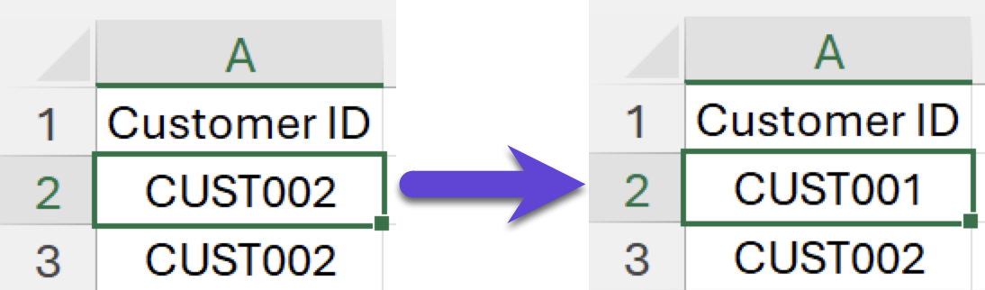 Let's change the first Customer ID entry in the source data from CUST002 to CUST001.