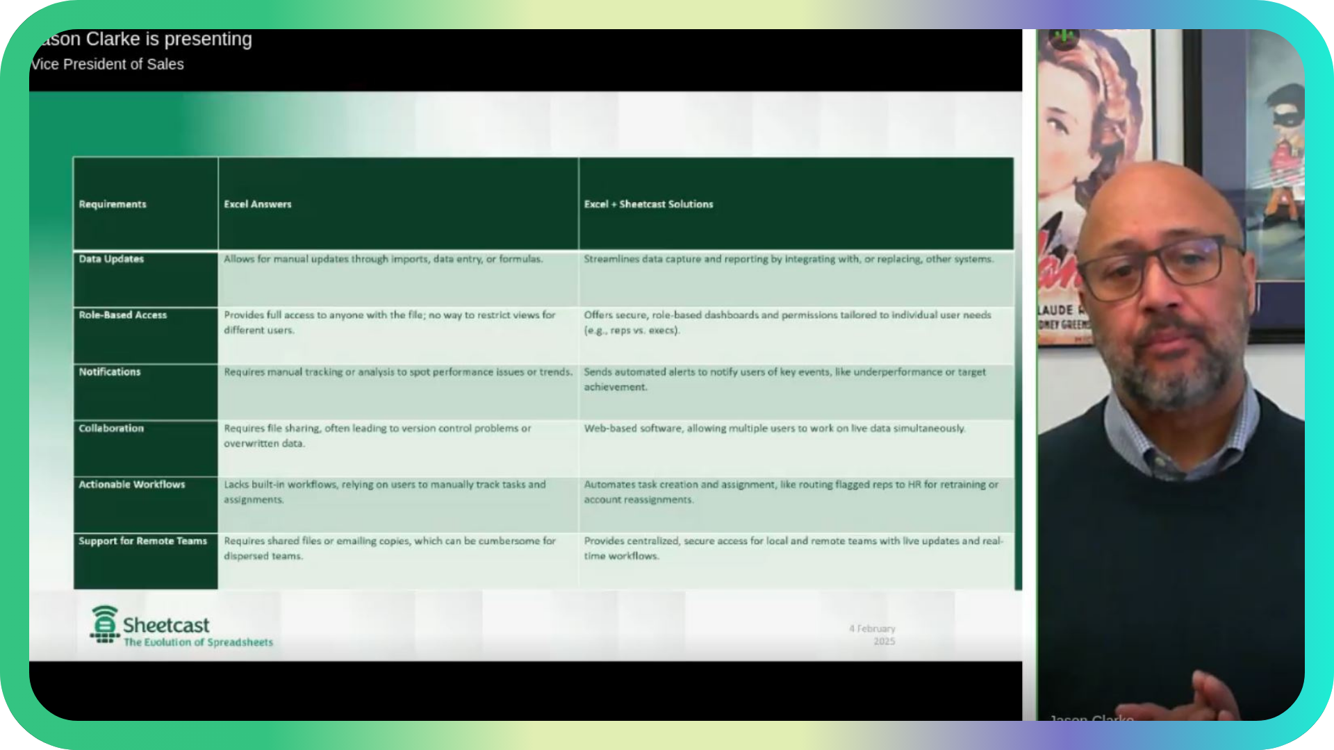 Joining remotely was Vice President of Sales Jason Clarke, who featured along with Celia in the online Breakout Rooms. They showed off more cool ways to use Sheetcast, highlighting how versatile it truly is.
