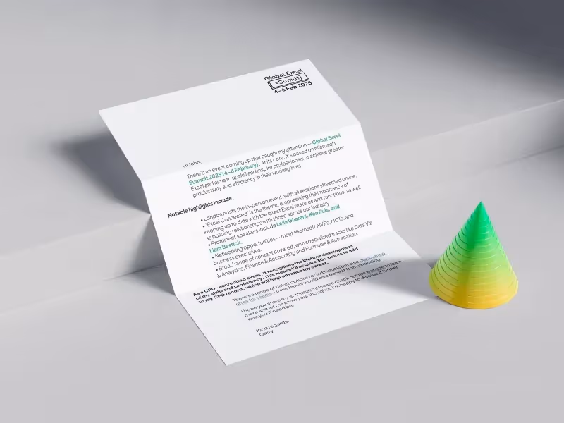 © 2025 The Global Excel Summit is organised and managed by DATEL Productions Limited, a company incorporatedin England and Wales (no. 10106893) and registered at Suite 407, 95 Wilton Road, London SW1V 1BZ, UK.